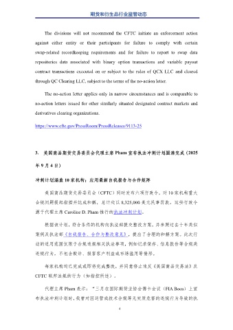 3. 美國商品期貨交易委員會代理主席 Pham 宣布執法沖刺計劃圓滿完成(2025
