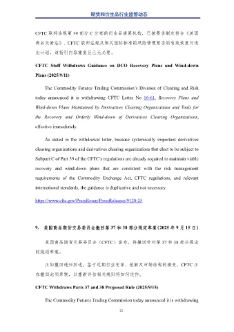 9. 美國商品期貨交易委員會(huì)撤回第 37 和 38 部分規(guī)定草案(2025 年 9 月 15 日)